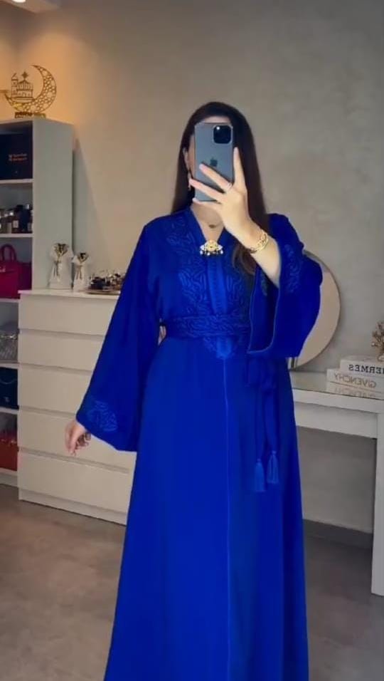 ‎قفطان رباطي لعشاق النخوة والاطلالة الجميلة من أجود خامات الكريب طايح ورطب بالعقاد والسفيفة مطروز بالطرز الرباطي في الصدر والكمام